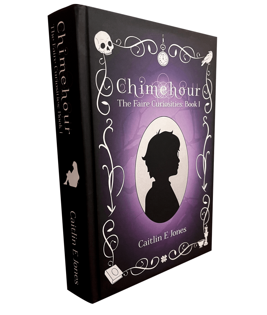To celebrate five years of Chimehour’s paperback and digital release, author Caitlin E. Jones sought to provide readers with a new, hardcover design. The goal for this project was to create something new, while still providing many similar elements to its paperback counterpart, giving it that same dark and magical theme.