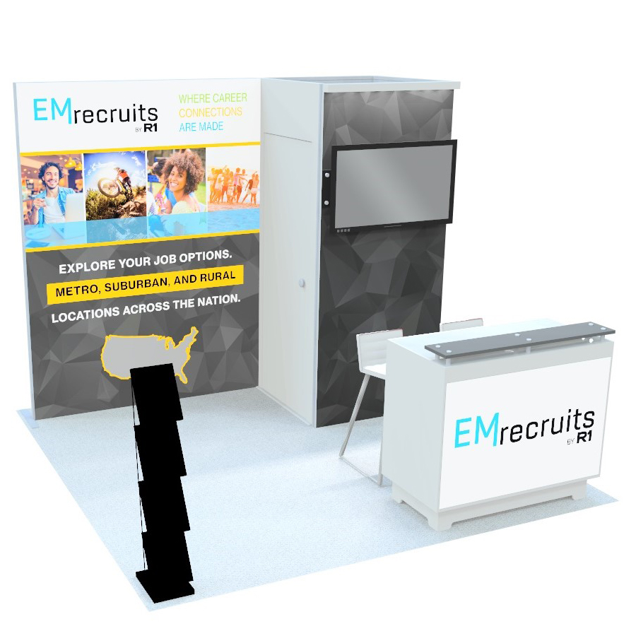 The American College of Emergency Physicians (ACEP) Scientific Assembly is the world’s largest emergency medicine educational conference bringing together the global EM community. For their exhibit space, EMrecruits by R1 sought a booth space with graphics both representative of the R1’s design elements, while also maintaining imagery consistent with their own branding. Artwork was then designed to attain a harmonious result of the two brands.