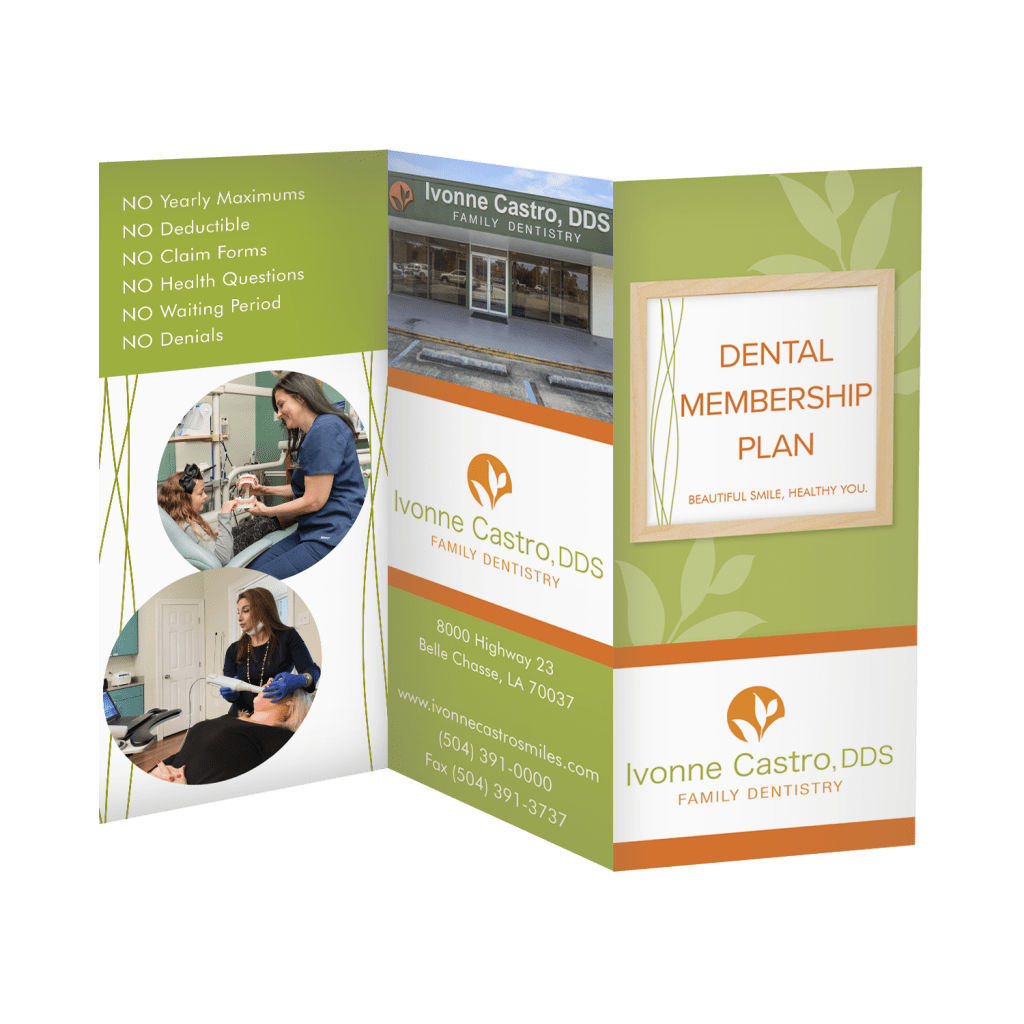 For the brochures of Ivonne Castro, DDS, the goal was to maintain the elegant and floral-like theme within the informative brochure, along with a sense of warmth, friendliness, and professionalism conveyed through its included images.